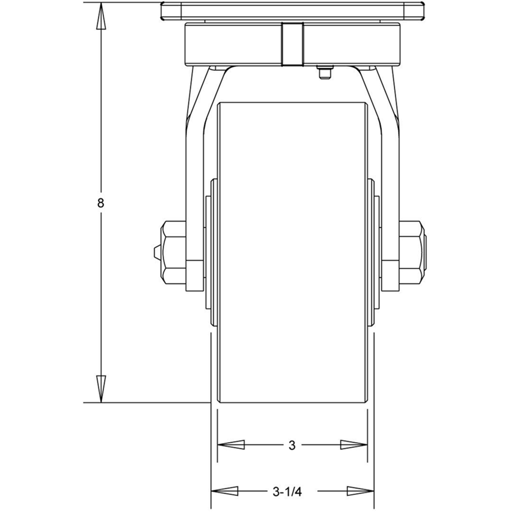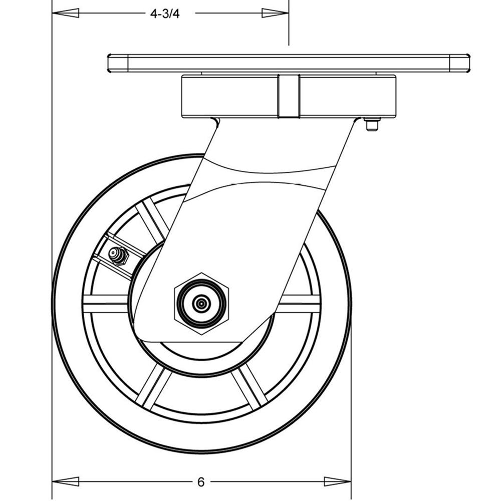 | Overall Height:Â 8" | Swivel Construction:Â Kingpinless - 1/2" Ball Bearings in Precision Machined Raceway |